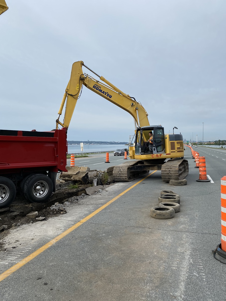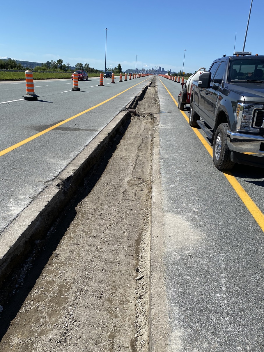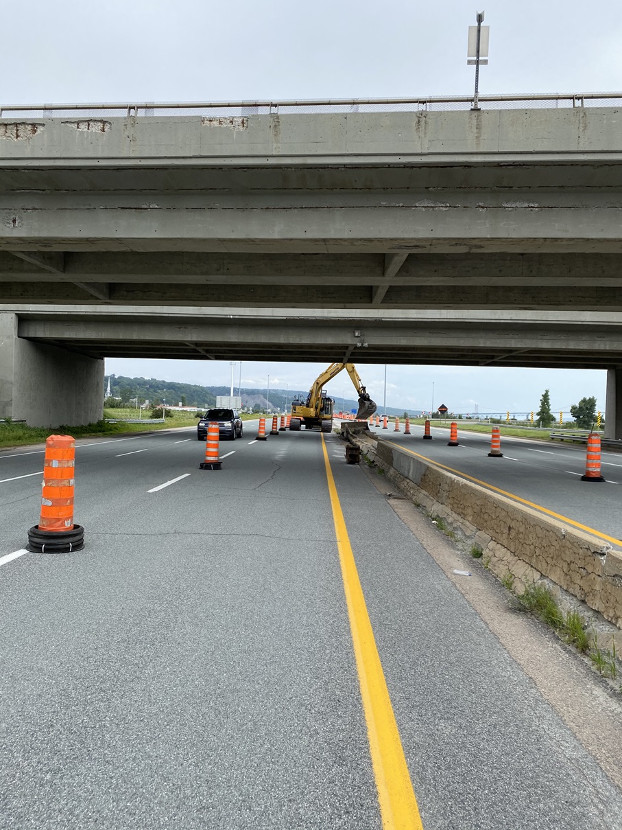Mtq projet Duffrin Montmorency. Démolition de la glissière médiane en béton sur l'autoroute Dufferin-Montmorency (A-440)